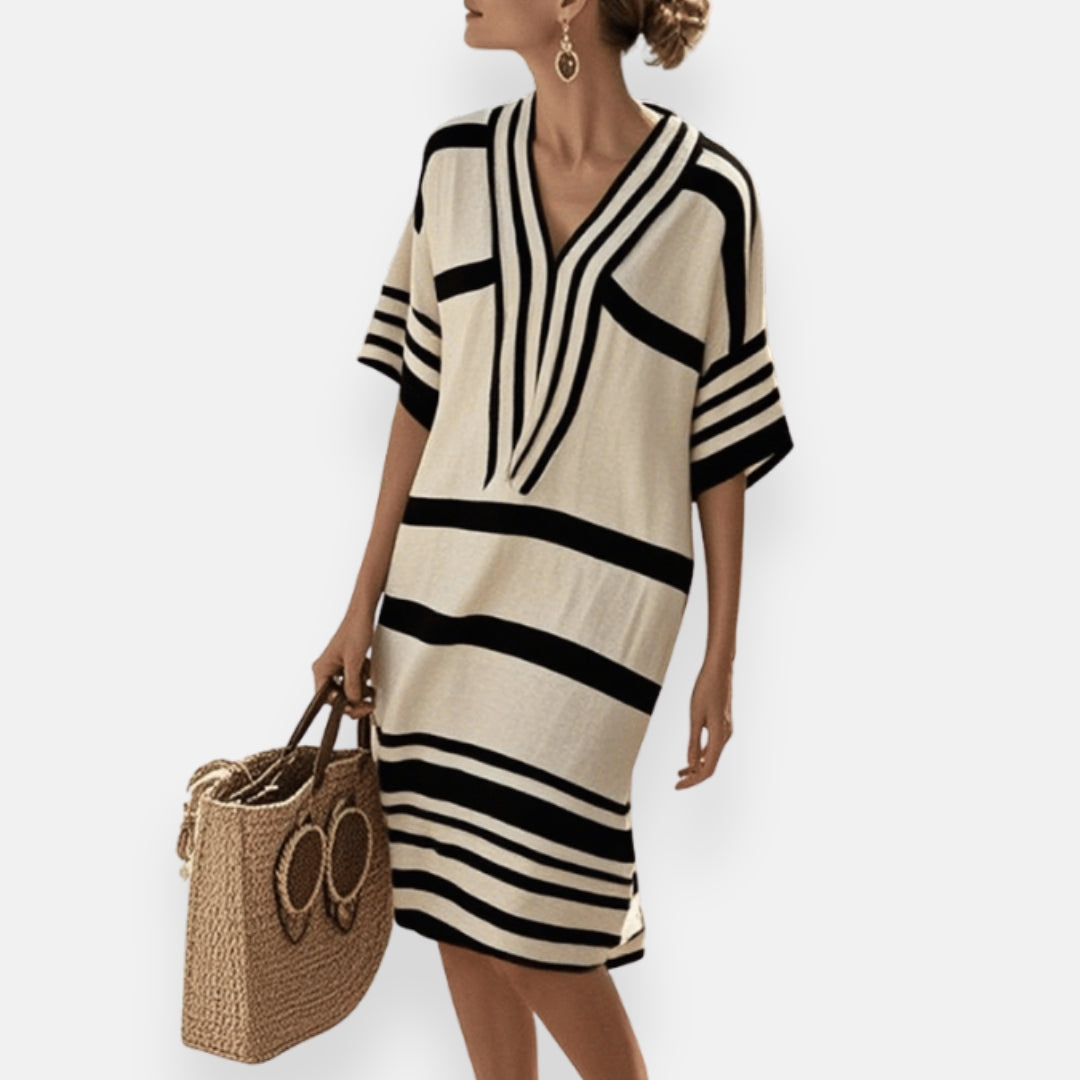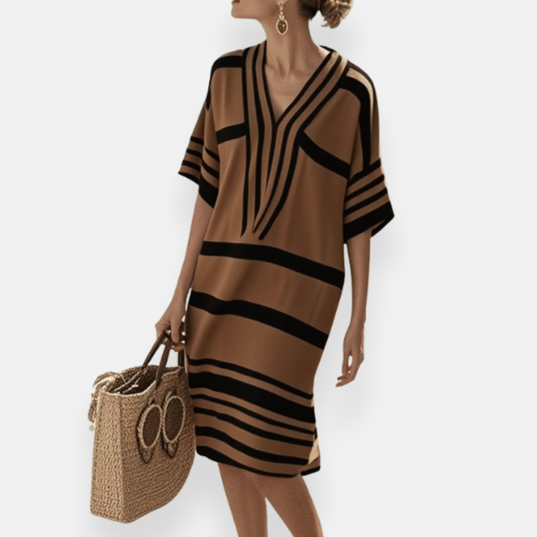 Florette | Abito ampio a righe con colletto tunisino