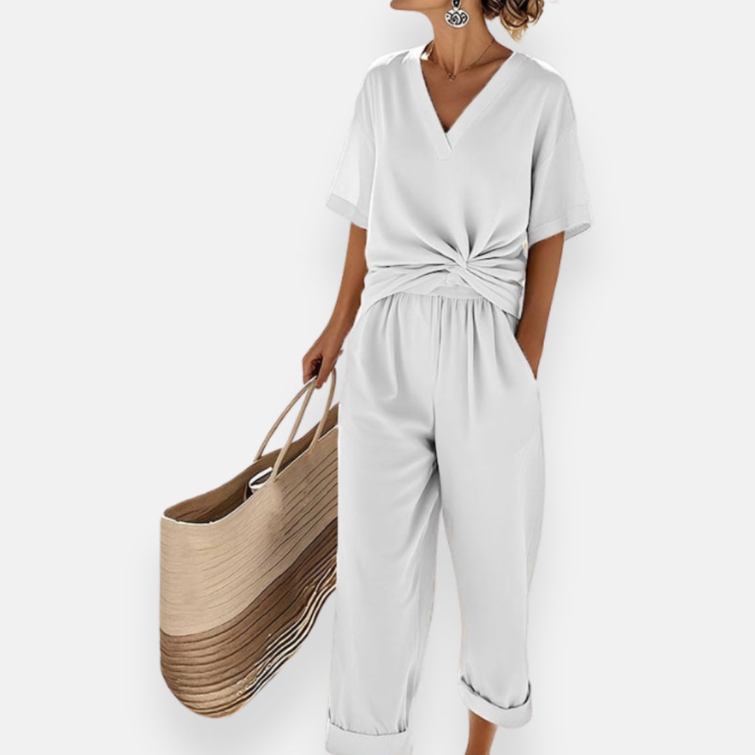 Con la sua silhouette fluida e i dettagli delicati, questo capo incarna l'eleganza informale ispirata alle coste mediterranee. Perfetta dalla mattina alla sera — che si tratti di una passeggiata sulla spiaggia, un aperitivo in terrazza o un momento di relax a casa.